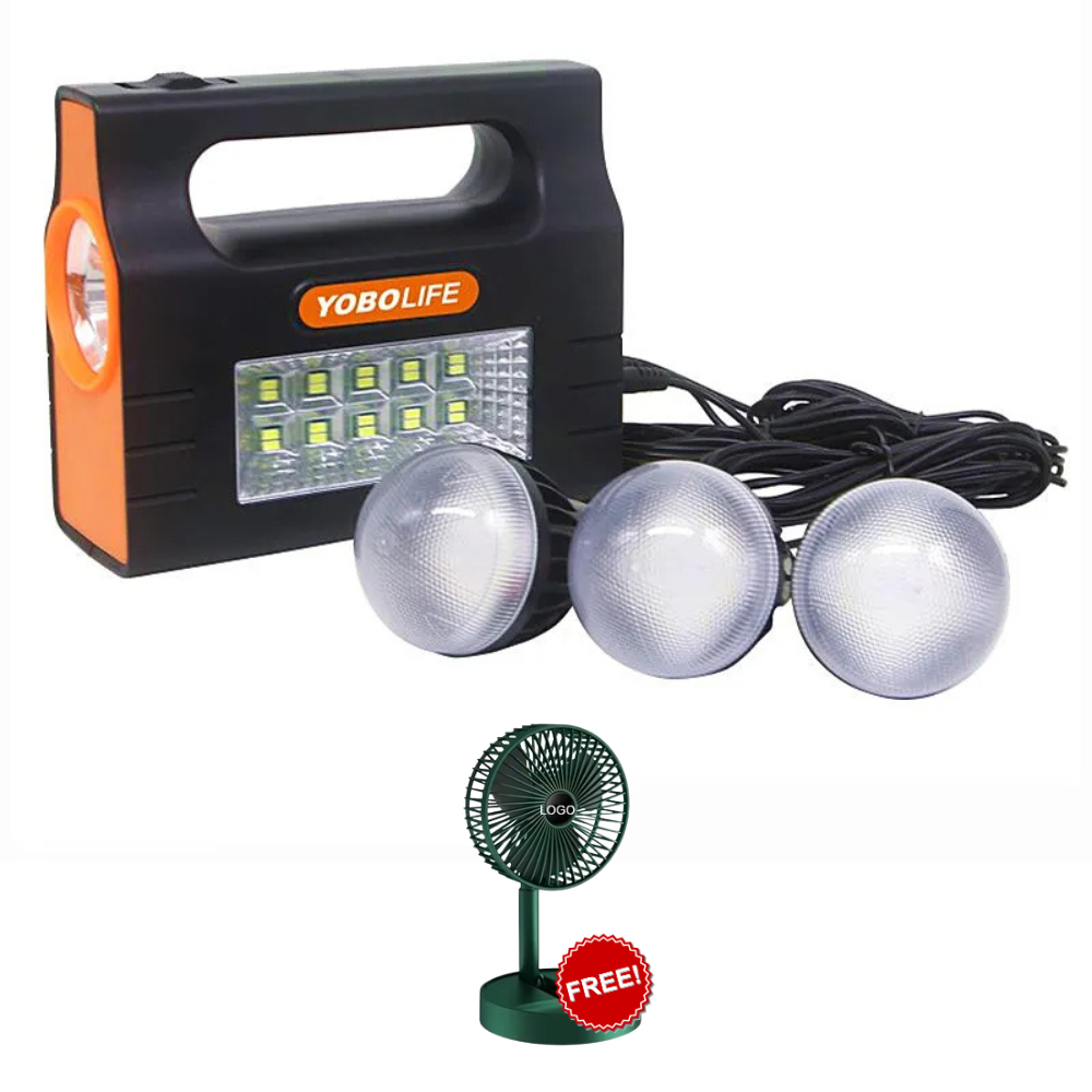 Solar Lighting Kit with 3LED Bulbs USB Mobile Phone Charge and LED Lighting + Free Fan